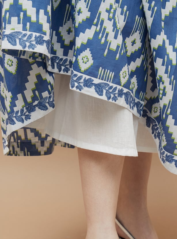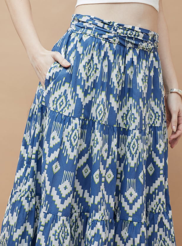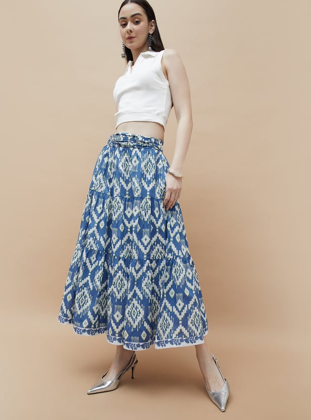 An ideal pick for a casual wardrobe, this skirt is designed with a printed surface, a slip-on construction, pockets, and a tiered silhouette. The flattering length and hue add realm to the skirt.